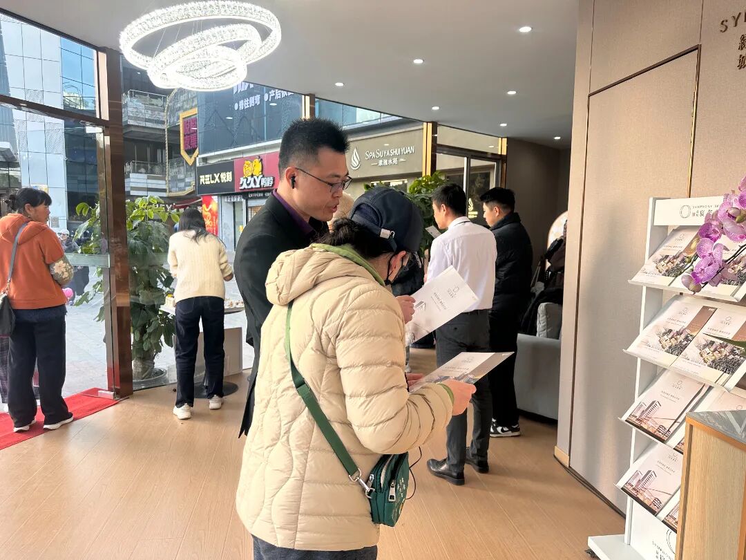 市民陈女士表示:“离地铁近,又挨着商场,上班和逛街都方便,特意来了解叠墅的户型和开盘细节。”现场,不少年轻情侣关注120平方米的高层户型,向置业顾问咨询装修标准与智慧社区配置;改善型家庭则更看重叠墅的空间布局与私密性。置业顾问通过户型模型、区域规划图等进行直观展示,耐心解答疑问,让市民对项目有了更全面的认识。