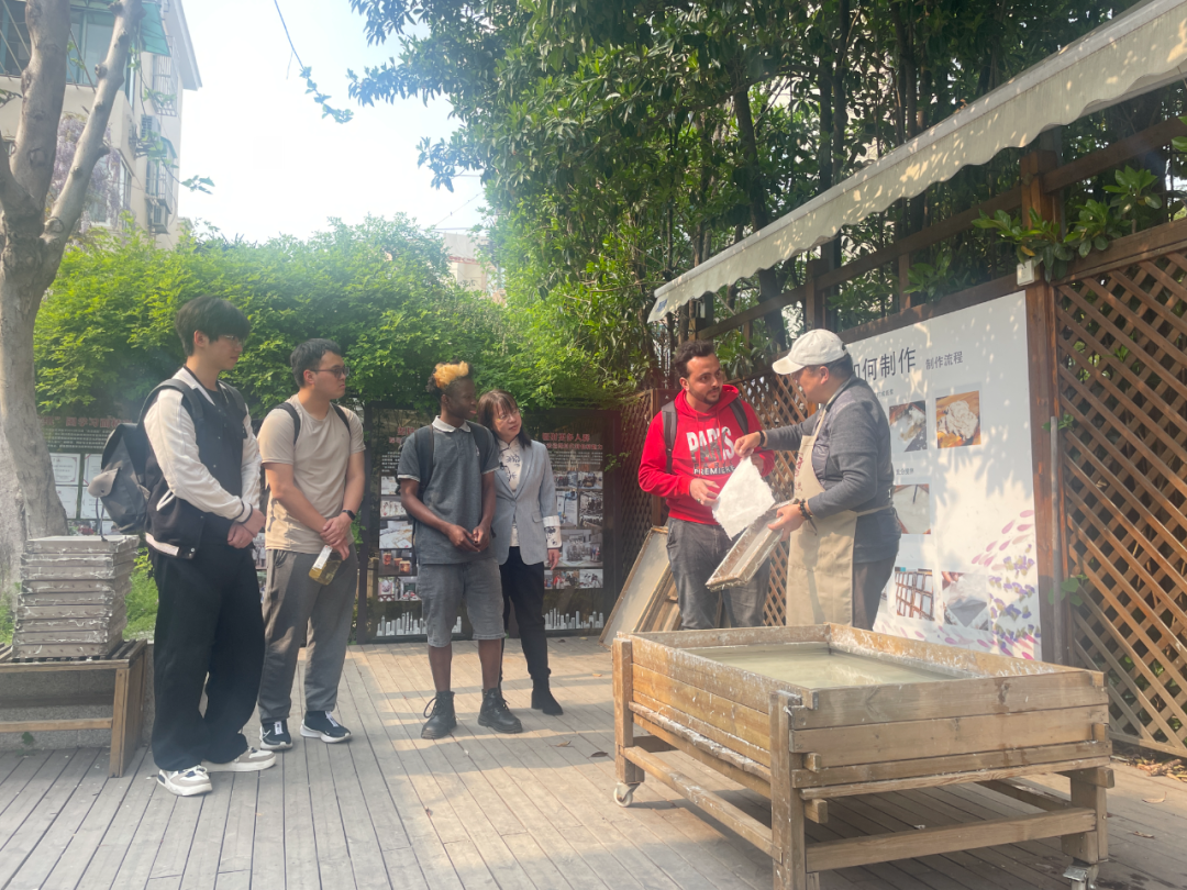 华东理工大学的课程特色在于校地合作,通过课程与基地联动的机制,把语言课程和实践活动作为有机整体进行系统设计。“留学生上午在《专业汉语》课上学完造纸专业术语,下午就能去凌云社区亲手体验古法造纸。”课程负责人介绍,课程模块与古法造纸非遗工坊体验相衔接,国际学生还组建了大学生创新创业团队,搭建非遗技艺类项目的数字资源库,结合文字、语音、视频等多媒体手段开展多语种传播,向国际伙伴阐释中国科技创新与传统智慧的融合之法,形成了“课堂认知—基地实践—海外传播”的完整教学闭环。