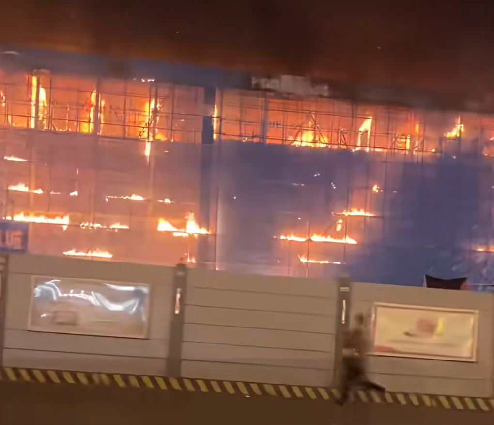 1月10日晚间,湖南省长沙市天心区香樟路与韶山南路路口附近,一栋临街的建筑工地突发火灾。