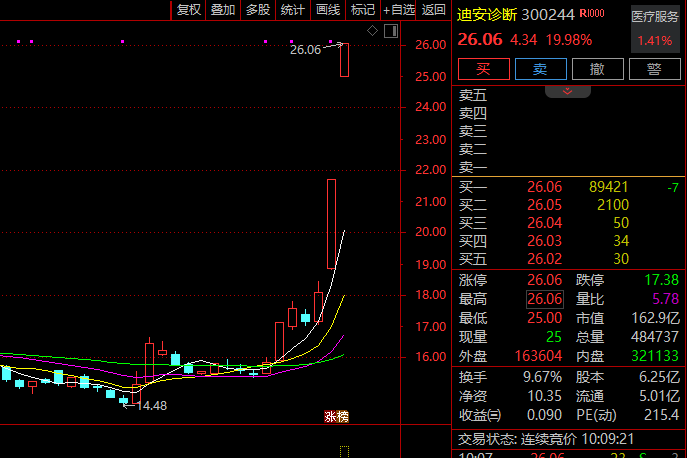 AI医疗、制药概念板块走强,迪安诊断、美年健康实现2连板,睿智医药、英诺特、泓博医药、卫宁健康等个股跟涨。