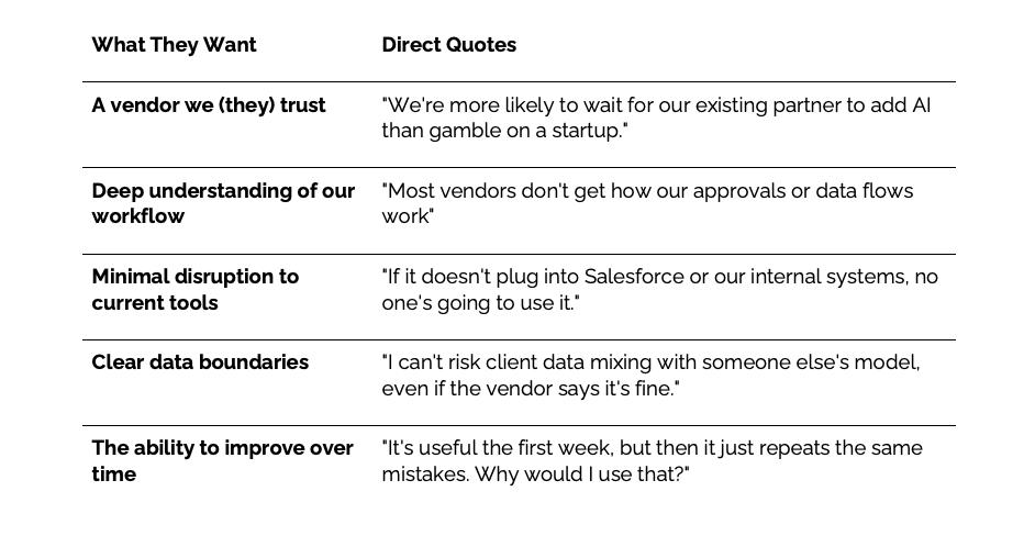 很多公司在尝试自研AI时,都会陷入这样的误区:系统设计过于复杂、盲目追求AI应用而脱离实际业务流程。正如一位参与调研的首席信息官所说:“我们今年看了几十个AI产品演示,真正有用的可能只有一两个,剩下的不是包装华丽就是纸上谈兵。”这种脱离实际的情况导致企业投入的AI项目难以落地,投资回报率自然无从谈起。