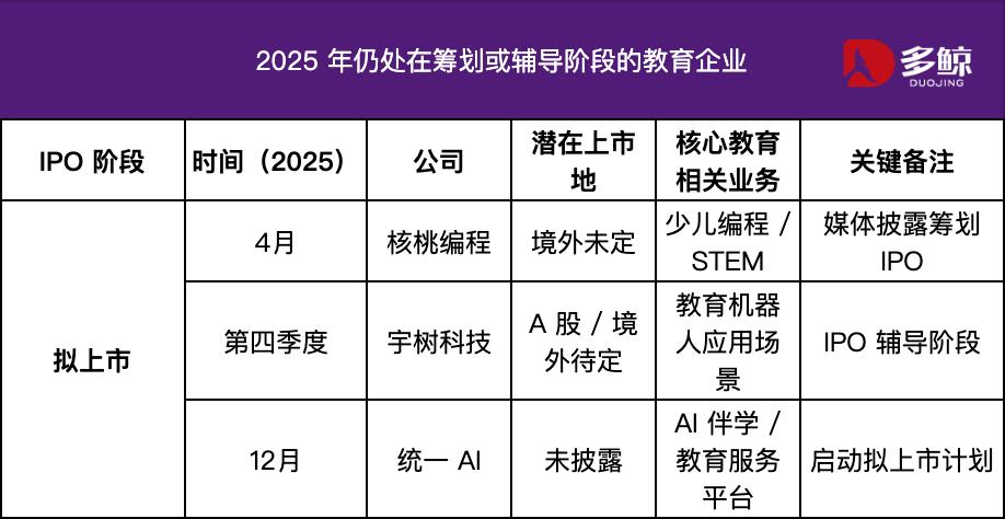 处于筹划或辅导阶段的公司更能体现资本态度的变化:技术潜力明确,但教育场景尚不足以支撑公开市场对稳定性的要求,资本变得更加谨慎。