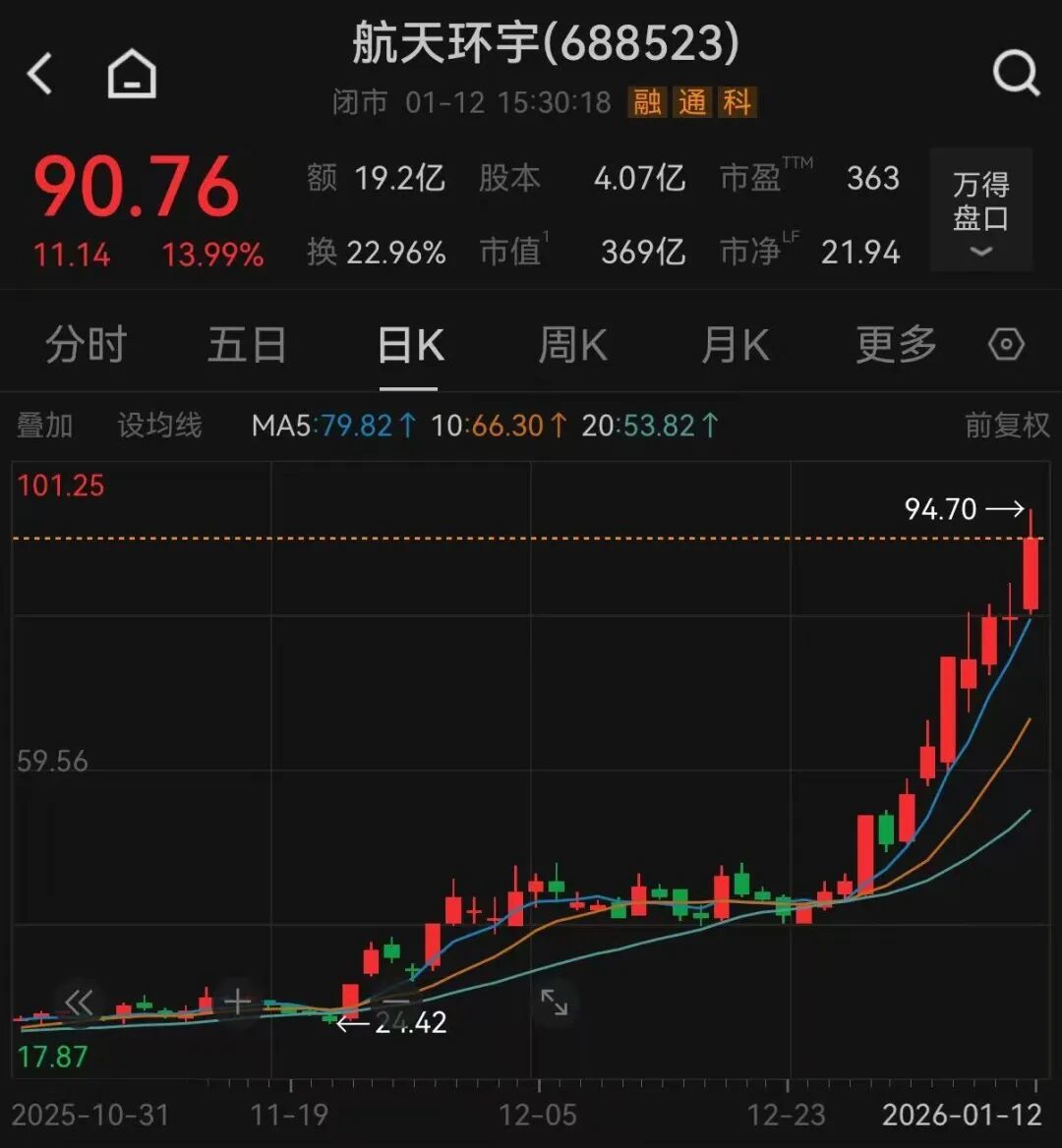 航天环宇12日收盘上涨13.99%,股价创下新高。今年以来,该公司股价已累计上涨超62%。