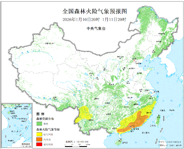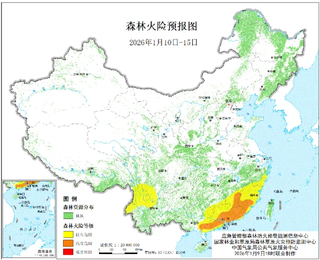 经过综合分析判断,预计在2026年1月10日至15日期间,福建南部、江西东南部、广东东部和南部、广西东南部的部分地区,森林火险等级将保持高度危险水平。为此,特发布高森林火险橙色预警,请大家密切留意火险变化情况,落实好预警响应措施,持续加强对火源的管控力度,强化应急准备工作,以有效应对当前严峻的高森林火险局势。