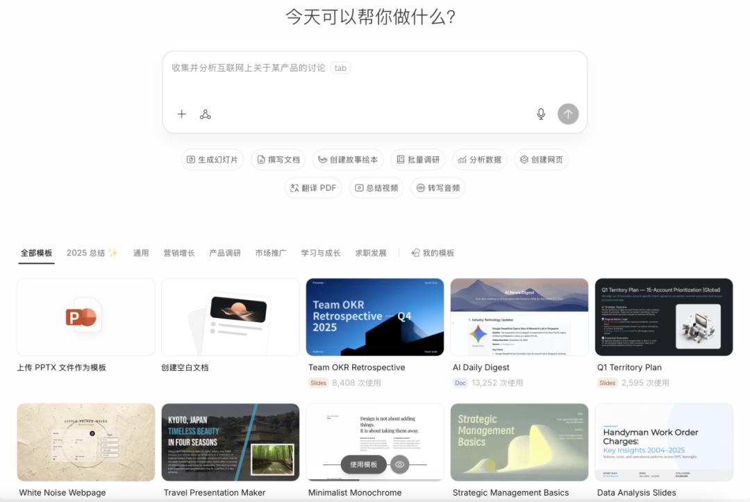 目前,AnyGen展示的案例包括文档撰写、PPT生成、批量调研、数据分析、网页创作、故事绘本制作等能力,与Manus上线初期的功能高度相似。此外,AnyGen强调生成内容的复用性与可编辑性,将「需求明确」理念融入结构化问答流程。
