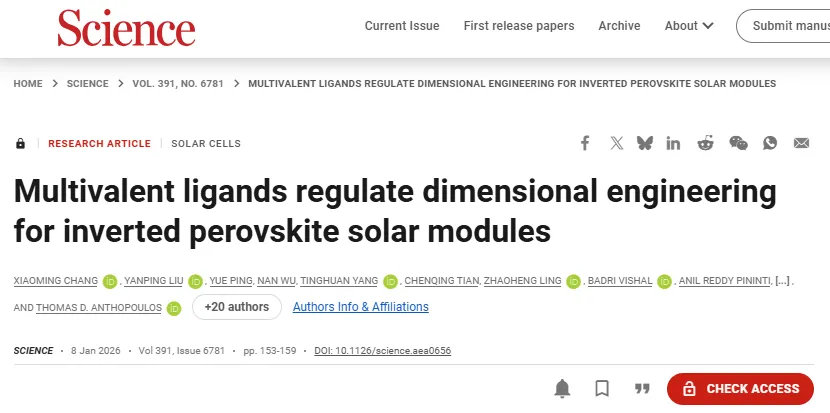 【复材前沿】Science新突破:钙钛矿太阳能电池维度调控实现高效超稳性能
