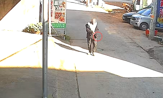 通过刘先生家门口的监控可以清楚看到,当天下午3点左右,一位大爷从他家门口经过时,随手把没熄灭的烟头扔在了地上。