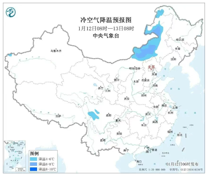 1月12日至14日,受冷空气影响,内蒙古、东北地区、新疆北部等地气温下降4℃至6℃,局地8℃以上,伴有4至6级偏北风;内蒙古东部、黑龙江、吉林、辽宁北部、新疆北部等地将先后出现小到中雪,新疆北部、黑龙江东南部、吉林东部局地有大到暴雪