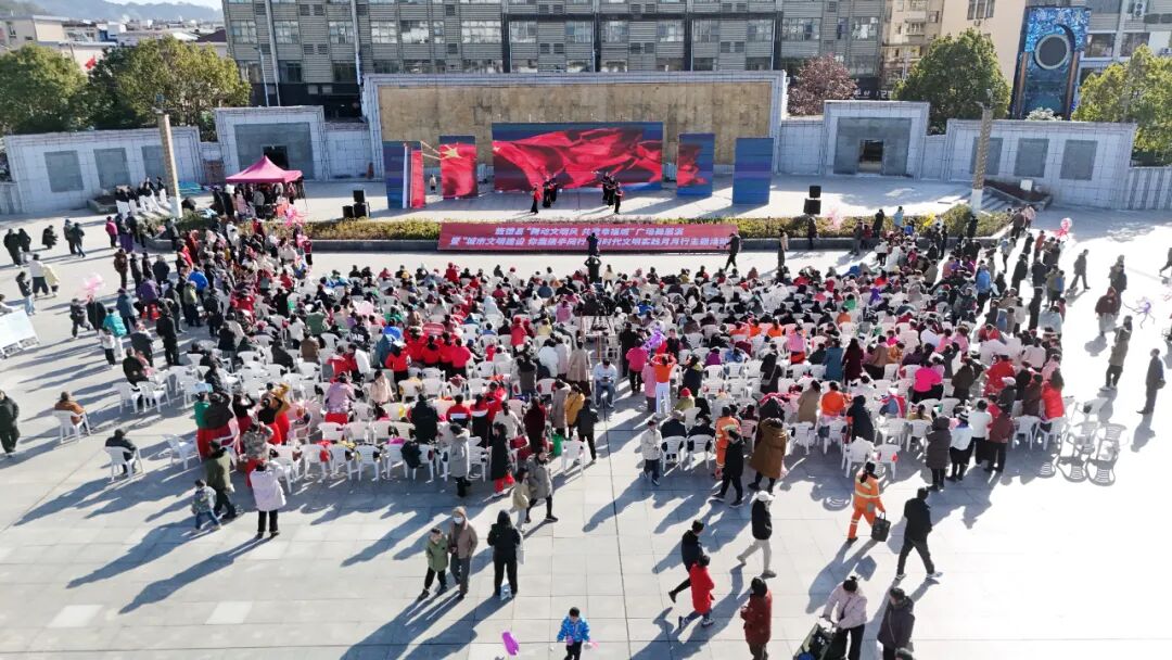 1月11日下午,冬日的暖阳洒在旌德县灵芝广场上,悠扬的歌声与欢快的舞步交织,一场以文明为核心的文化盛宴在此热烈开启。这场名为“舞动文明风,共建幸福城”的广场舞展演暨“城市文明建设,你我携手同行”新时代文明实践月月行活动,由旌德县新时代文明实践中心主办,中共旌德县委宣传部、旌德县文明办承办,节目均由群众自发编排导演,数百位市民齐聚广场,共同沉浸在这场充满活力的文艺盛会里。