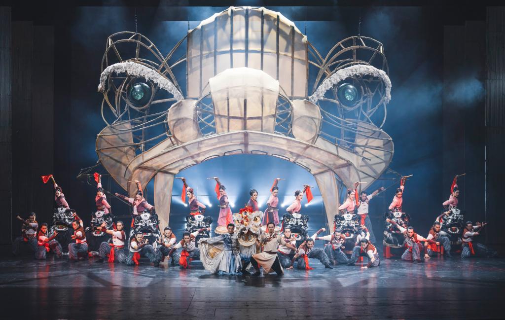 1月10日至11日,广州歌舞剧院创排的舞剧《醒·狮》走进醒狮起源地广东佛山巡演。18名男演员舞动9头威风醒狮,踏鼓面稳步向前。刹那间灯光熄灭,竹片龙骨架搭建的巨型醒狮造型在舞台显现,它睁眼的瞬间目光如炬,全场掌声雷动、惊呼四起。