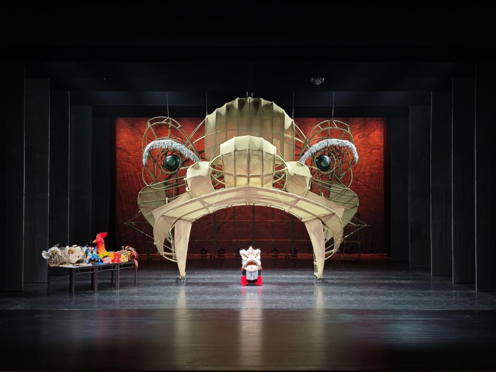 这是舞剧《醒·狮》中使用的部分道具。新华社记者 田宇 摄饰演凤儿的梁绮琦最初以观众身份接触这部剧。2019年她在北京上学时,看到家乡的大头佛、木鱼歌、鸡公榄、英歌槌等文化符号搬上舞台,深受触动。但将市井民俗转化为舞台艺术,过程充满挑战。