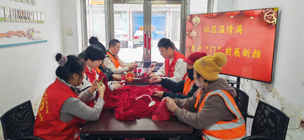 活动现场氛围温馨,社区工作人员与物业志愿者提前做好充足准备。大家围坐在一起,认真学习保暖护套的缝制方法,穿针引线、裁剪布料、缝合边缘,用一双双巧手将普通的毛毡布料,精心制作成既保暖又防滑的门把手“外衣”。制作完成后,志愿者们分成多个小组,有序前往辖区各沿街商铺。每到一家商户,志愿者都主动热情交流,详细说明活动的初衷与意义,在征得商户同意后,仔细地为每个冰冷的门把手穿上厚实柔软的“绒衣”。“社区牵头、物业参与、商户受益”的服务模式,让温暖迅速传遍整条街道。看着焕然一新的门把手,商户们露出满意的笑容,纷纷称赞:“这个冬天太贴心了!以前开门总觉得门把手冰凉,现在有了保暖护套,握住的不仅是温暖,更是社区对我们的关怀,心里暖暖的!”