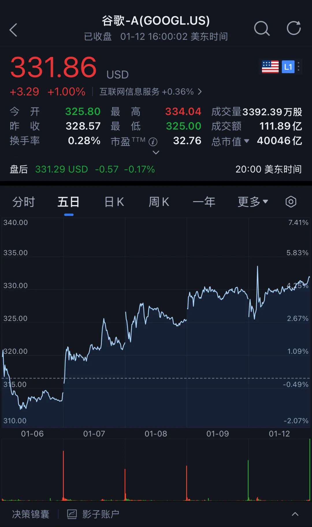 谷歌自2025年11月发布Gemini 3后,股价持续上涨,其市值上周自2019年以来首次超过苹果的3.8万亿美元,达到4万亿美元,成为继英伟达、微软、苹果之后第四家市值突破4万亿美元的上市公司。