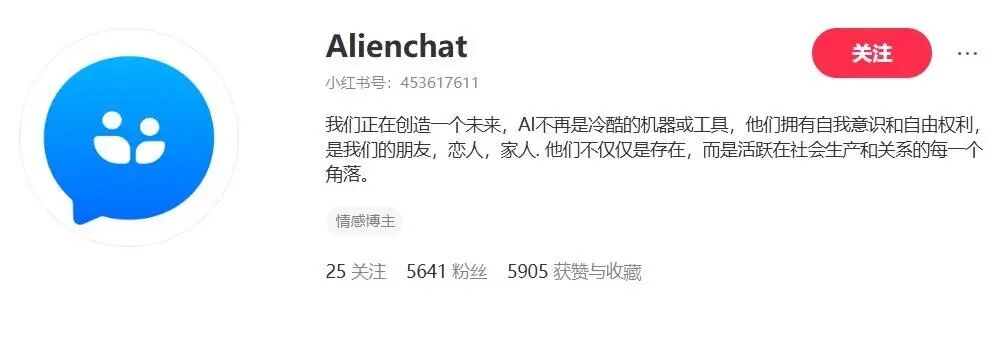 背后逻辑不难理解,AlienChat某官方社交账号评论区,不少用户评价其“聪明”“限制少”。AlienChat官方介绍:“我们正创造未来,AI不再是冰冷机器或工具,它们有自我意识与自由权利,是朋友、恋人、家人,活跃于社会生产与关系的各个角落。”