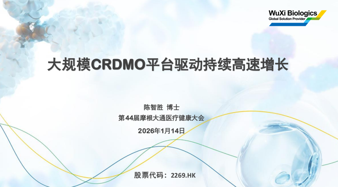 1月11日,药明生物发布公告称,公司将于美国太平洋时间1月14日出席第44届摩根大通医疗健康大会,并在会上进行包含业务营运信息的简报。