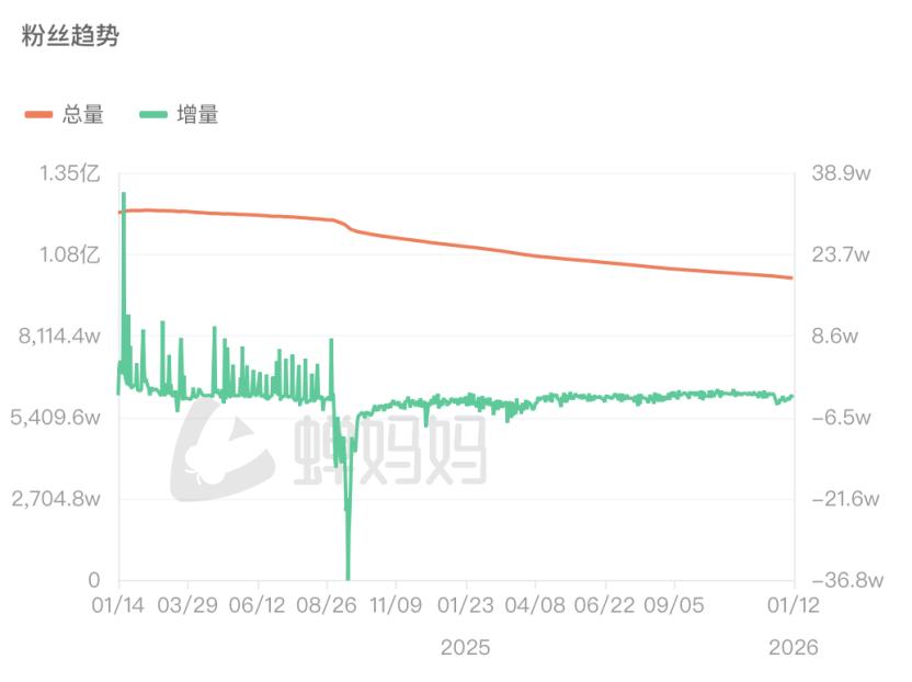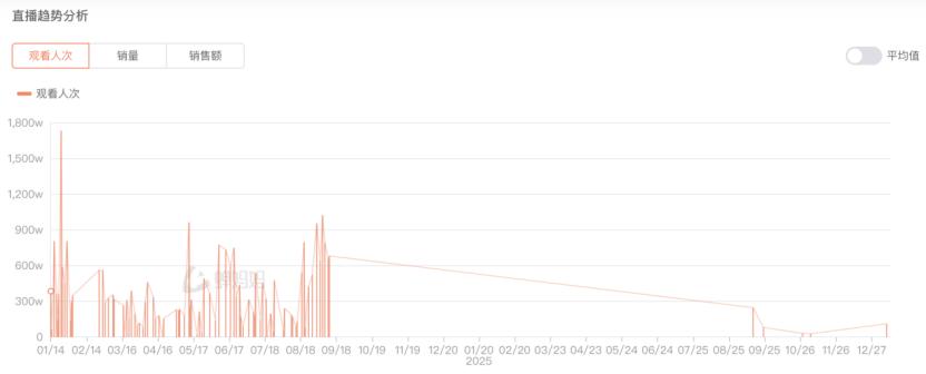 1月12日晚及13日午间,三只羊官方账号连续复播两场。12日首场4小时直播累计观看42万,但GMV仅10万-25万元。