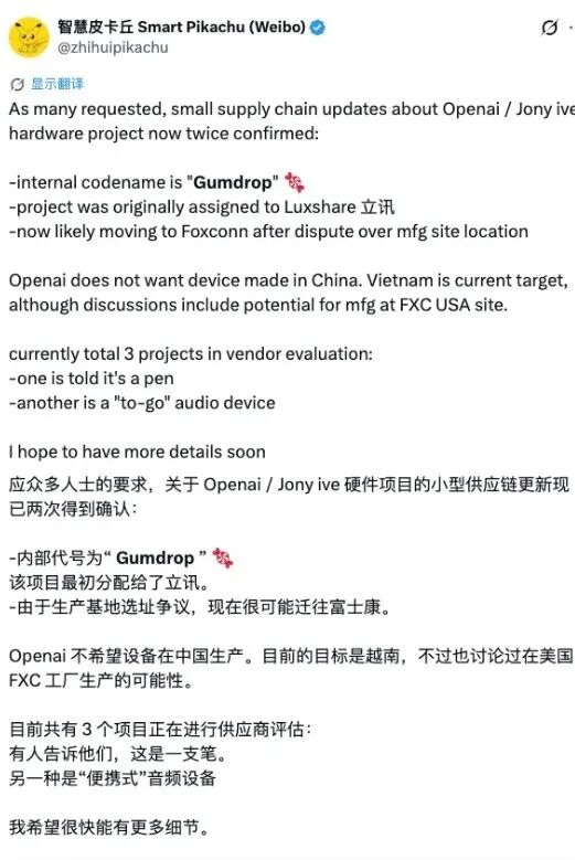 早在2024年5月,OpenAI就以65亿美元收购Jony Ive创办的io硬件公司,完成了从AI算法到硬件设计能力的关键补强。io团队原本就专注于开发“为AI时代而生”的无屏交互设备,“甜豌豆”正是这一理念的延续——它摒弃屏幕依赖,通过内置麦克风与摄像头实现环境感知,以主动式AI服务替代被动指令响应。