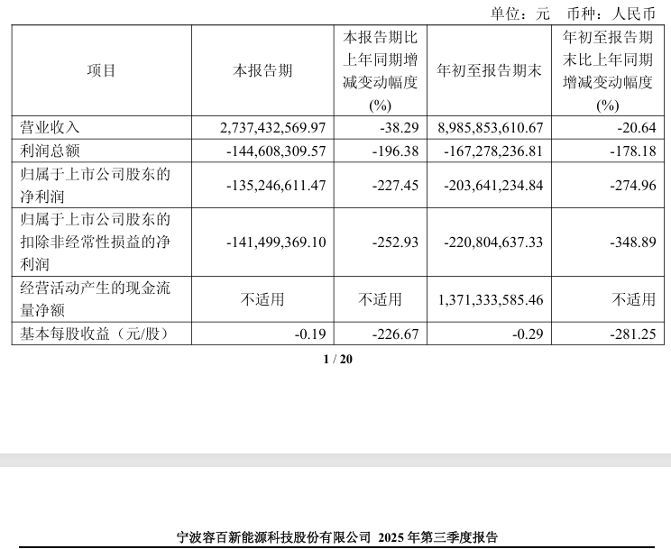 容百科技近日发布的业绩预告显示,经财务部门初步测算,公司2025年预计实现归母净利润-1.90亿元至-1.50亿元,扣非后净利润为-2.20亿元至-1.80亿元。