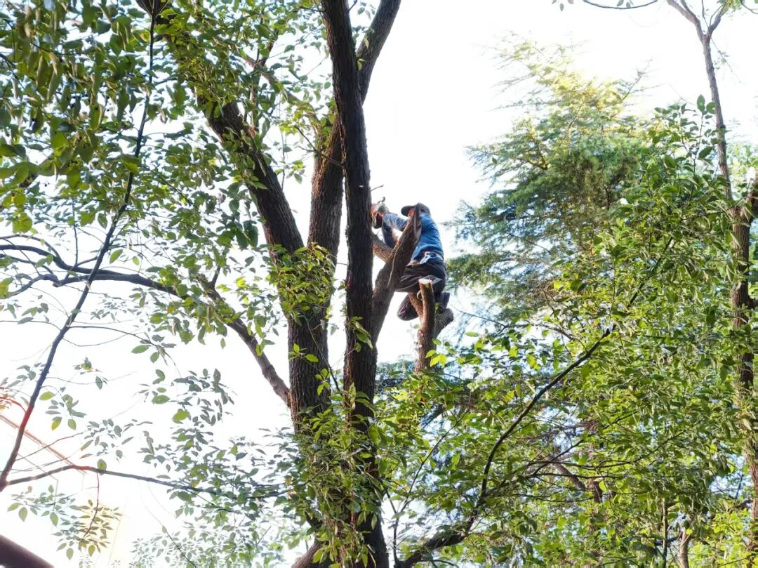 为尽量降低对居民日常生活的干扰,物业公司采取“每日修剪一排树”的精细作业方式,提前发布施工通知,引导居民移车,并在现场设置明显的施工警示牌。专业修剪人员对小区内60棵高大树木进行科学规范的修剪,同时清理绿化带里的杂乱灌木,既改善了采光状况,又提高了小区环境的整洁度。
