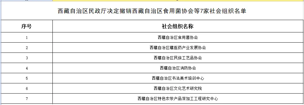 原标题:《西藏7家社会组织被撤销登记!》
