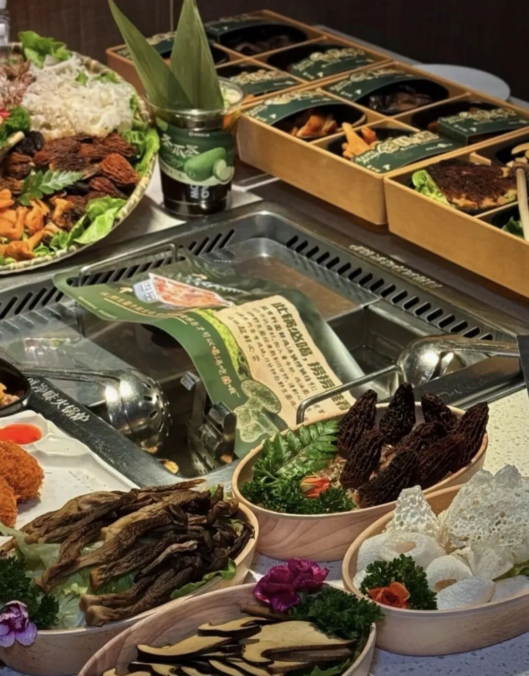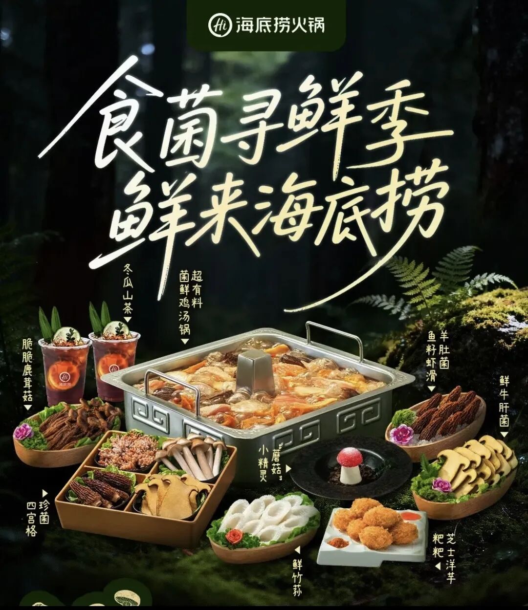 此次菌菇工坊的核心亮点是构建了从锅底到菜品、小吃、饮品的完整菌菇创意体系,主打“一桌菌宴,品尝23种山野至鲜”: