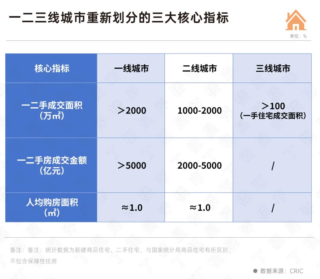 三个关键指标构成了划分的核心:一二手住房成交面积、一二手住房成交金额、人均一二手购房面积。