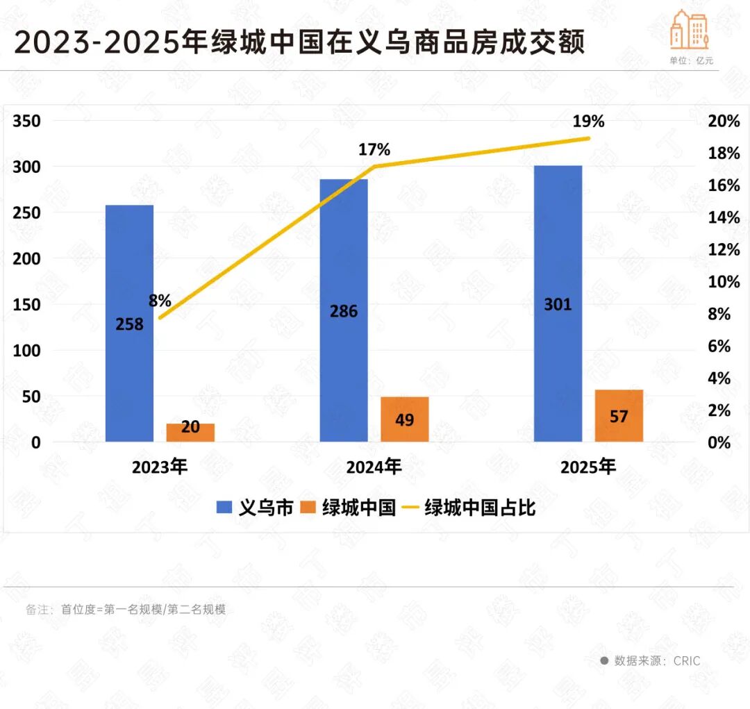 以义乌市场为例,绿城在过去三年里,拿地金额占全市的10%,市场占有率从2023年的8%上升到2025年的19%,首位度高达2.5倍。在单价3万元/平方米以上的高端市场,绿城的成交占比接近三成,占据绝对主导地位。