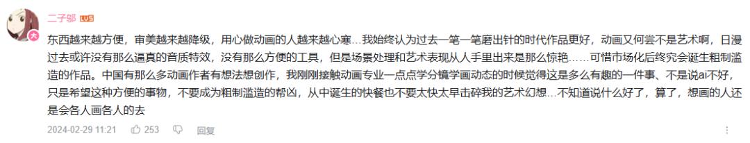 将AI作为辅助工具减少重复工作,用户并不反感,毕竟创作者应聚焦创意而非机械劳动。但用户担忧的是,部分创作者过度依赖AI,将其作为核心生产工具。例如,《中华小当家》作者小川悦司曾向AI询问剧情发展,却未得到满意答复。