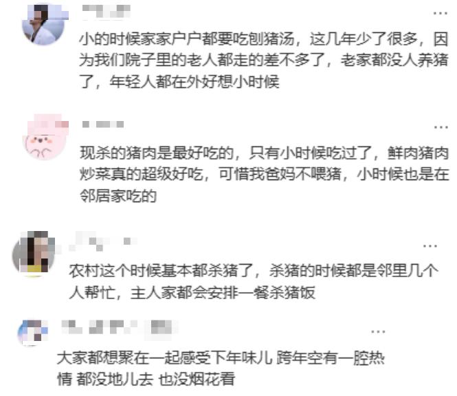 评论区里最打动我的,是那些说“想起外公了”“好久没回老家了”的人。对很多在外漂泊的年轻人来说,“杀年猪”像个记忆开关,关联着童年、故乡、宗亲,还有那种热热闹闹的烟火气。
