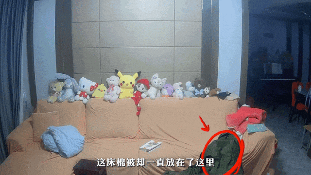 通过监控发现,当晚小开曾将一床军绿色棉被放在取暖器和沙发上,最先被引燃的正是这条棉被。孩子妈妈说,平时用取暖器时会在脚上盖小被子保暖,可家人入睡后,这床棉被被遗留在了取暖器旁,在持续加热下最终被引燃,导致了悲剧。