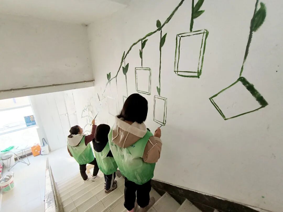 前期讨论阶段,专业团队广泛收集居民意见,鼓励大家畅所欲言提出创意。退休老人分享邻里间的故事,提议融入“邻里互助”主题;年轻志愿者倡导“绿色生活”理念;五年级学生相丞芸和妈妈一起,把家中的手绘消防安全画作拿出来,这幅作品成了墙绘灵感的来源之一,最终展示在一楼显眼的位置。