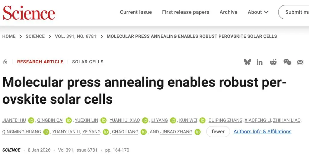 【复材前沿】西安交大2026年首篇Science成果:分子压印退火技术突破钙钛矿太阳能电池瓶颈