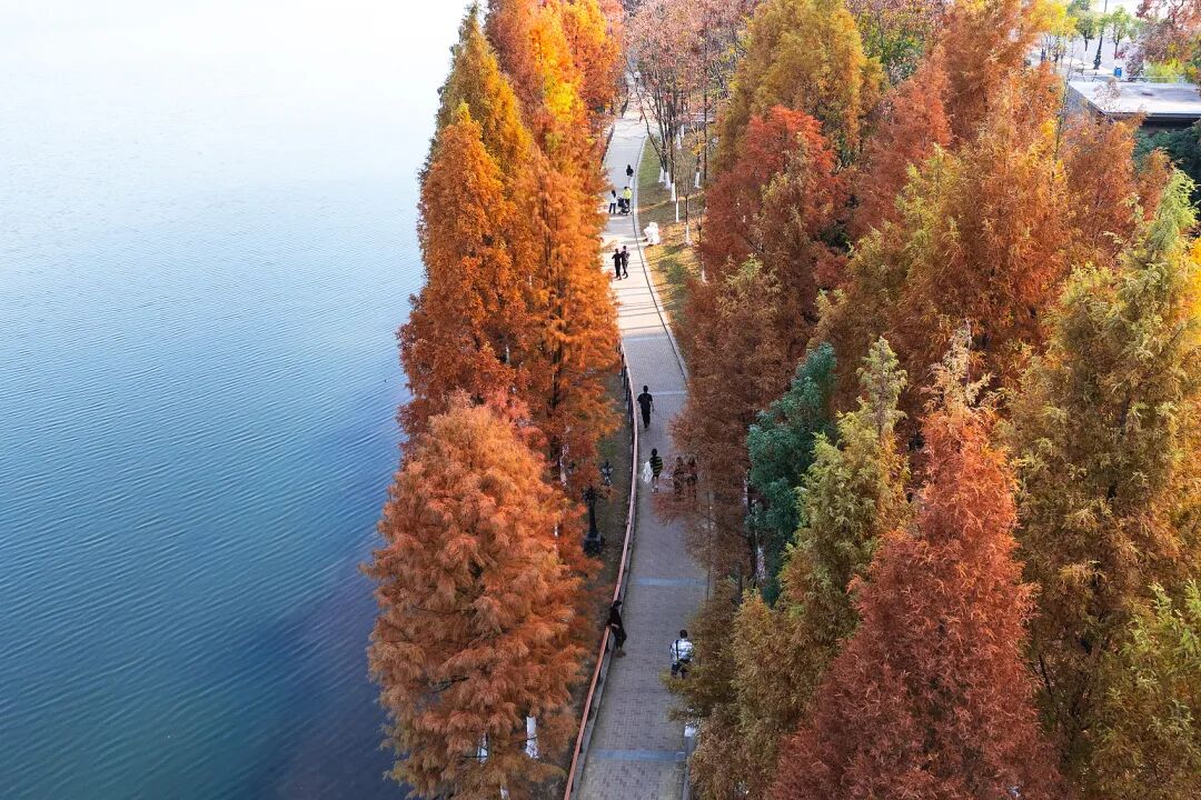 △湘江河畔杉林披红。(图/视觉中国)