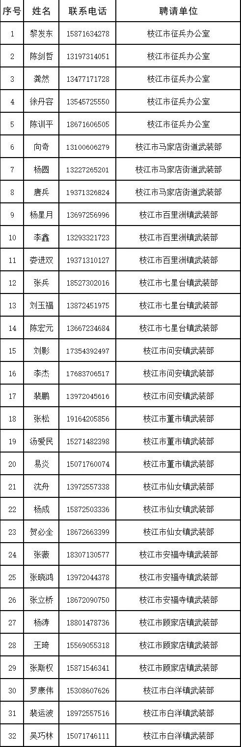 为严格规范征兵工作纪律,切实保障广大应征青年的合法权益,提升征兵工作的透明度,主动接受社会各界和人民群众的监督,确保全市征兵工作能够在公开、公平、公正的环境下开展,营造风清气正的征兵氛围,现将枝江市2026年廉洁征兵监督员名单以及监督举报电话正式向社会公布。