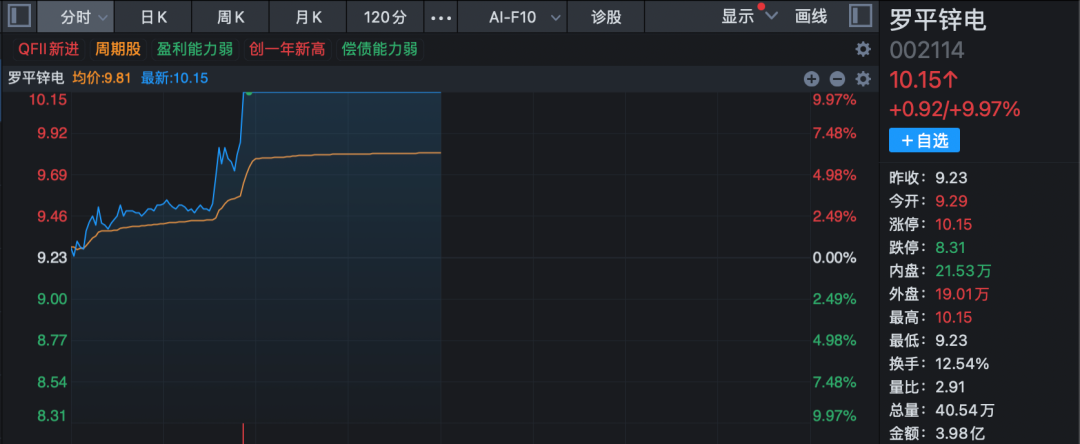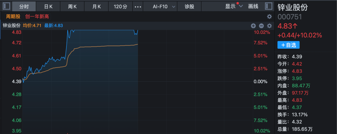 有色金属概念股在早盘逆势拉升,板块指数一度大涨超3%,创下2007年11月以来18年的新高。锌业股份、罗平锌电、新威凌等个股强势涨停或涨幅超10%。