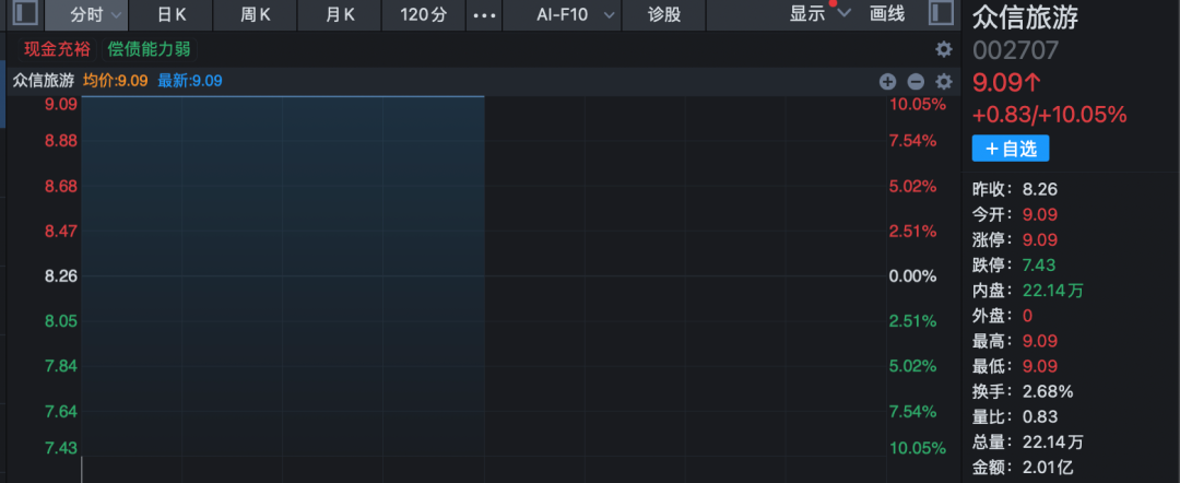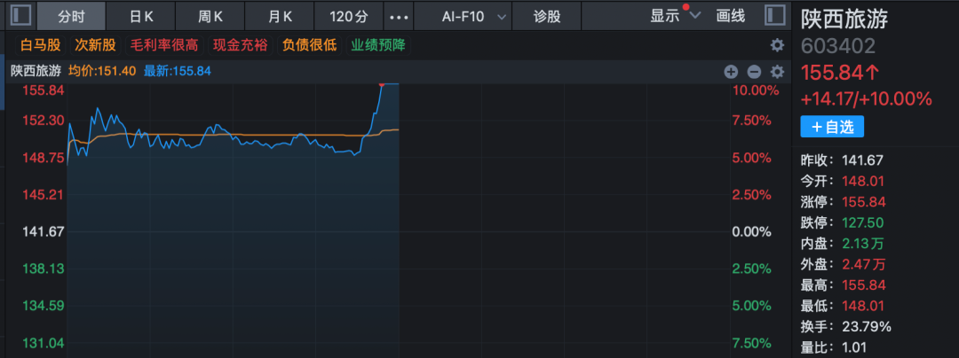 旅游板块早盘同样逆势高开高走,板块指数盘中大涨超2%,创下近4个月新高。众信旅游开盘即一字涨停,实现连续两日封板;陕西旅游在午间收盘前7分钟直线拉升涨停;西安旅游、长白山、云南旅游等个股也在临近午盘时出现快速上涨。
