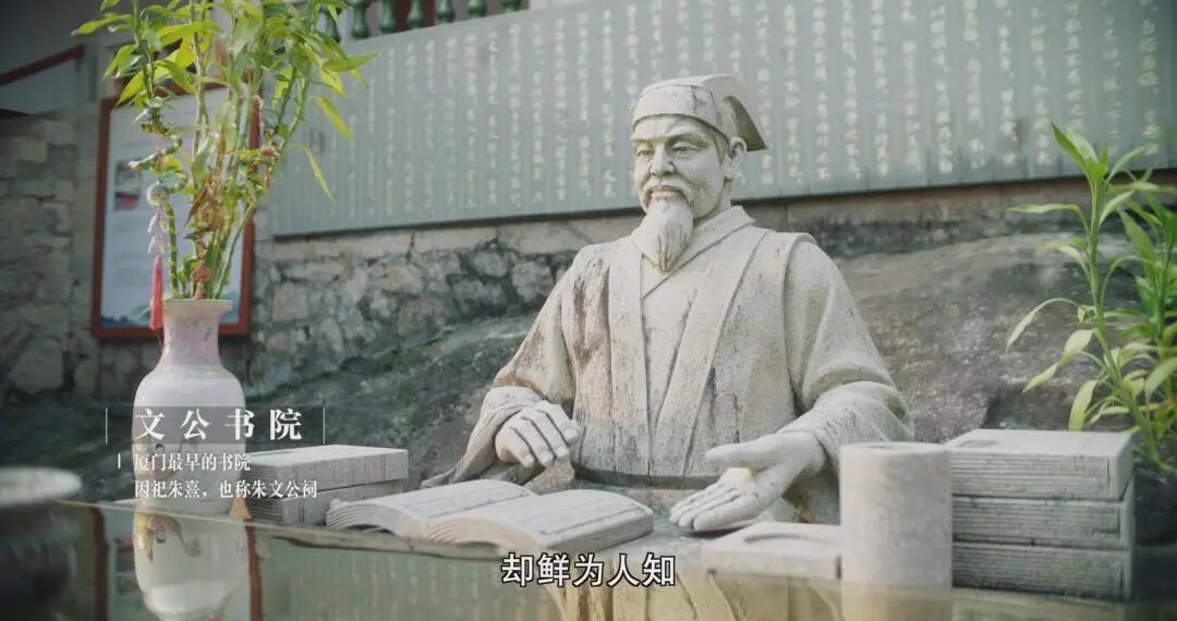 身着儒服、头戴纶巾,拱手正襟、神态自若,这幅半身石像镶嵌在厦门最早的官办书院——文公书院内。画中之人正是享誉世界的儒学大师朱熹,相传此画为朱子对镜自绘,与常见形象相比,在厦门人的记忆里更显年轻。