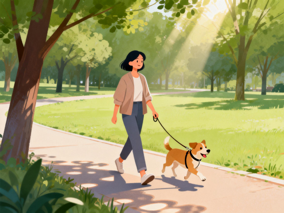 出门遛狗时牵好牵引绳,妥善处理宠物的粪便