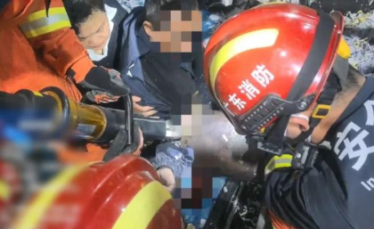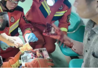 一名男工作业时,右手臂不慎卡进机器缝隙,当场疼到意识模糊,情况十分危急。消防员火速到场后兵分两路,一组操控液压破拆装备精准扩张机器,另一组安抚男子情绪,全程小心翼翼避免二次伤害,最终成功解救工人并送医救治。