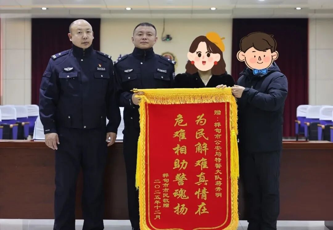 近日,桦甸市公安局特警大队辅警蒋秀明,在工作途中偶遇一名突发疾病的群众,及时伸出援手助其脱离危险。1月12日,获救群众的家属特意来到桦甸市公安局特警大队,送上一面写着“为民解忧真情在 危急相助警魂彰”的锦旗表达感激之情。