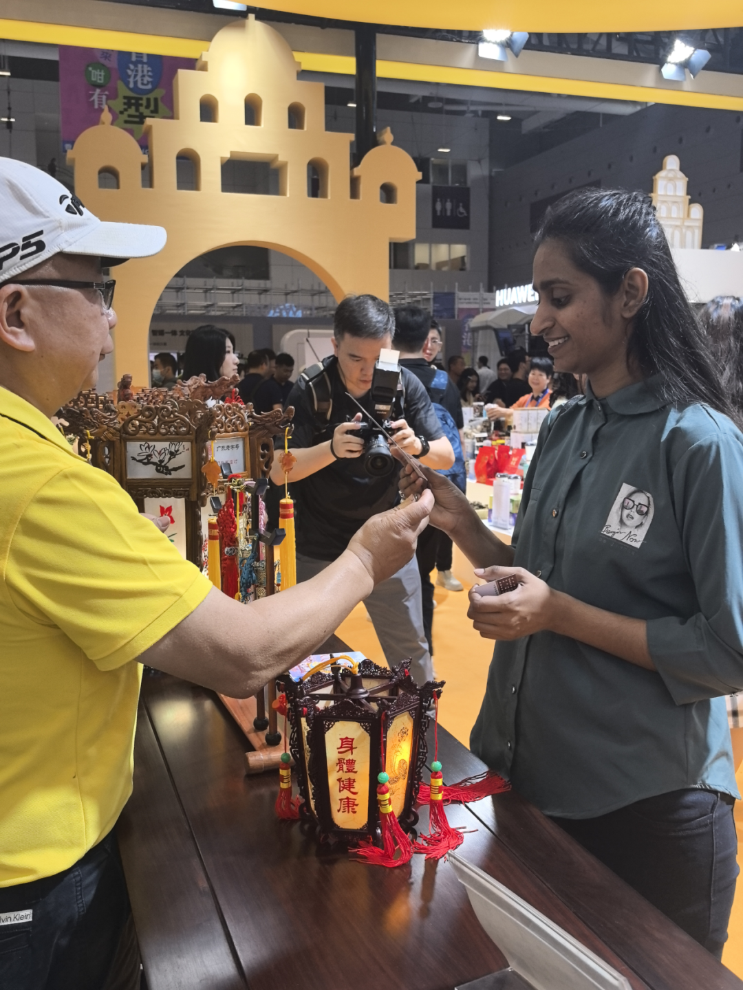 第二十一届深圳文博会上外国友人观赏东艺宫灯