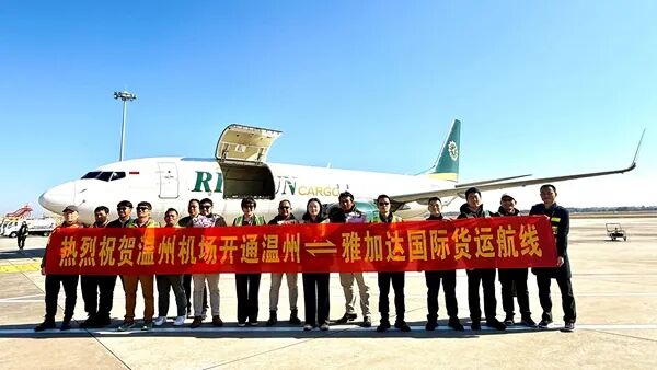温州—雅加达国际货运包机航线成功首航(温州机场供图)