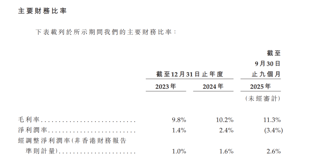招股书显示,2023年至2024年,钱大妈的整体毛利率分别为9.8%、10.2%;2025年前三季度为11.3%,虽然有所提升,但仍明显低于主打精品生鲜、即时配送的同行。以叮咚买菜为例,其毛利率近年来稳定在30%左右。