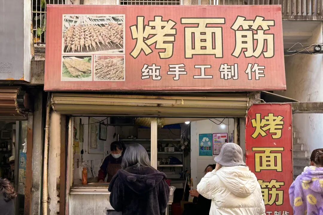 下午四点半,中山小学尚未放学,学校后门银河西巷那家名为“烤面筋”的小店前已围满了人。有人是来给孩子带几串解馋,有人则纯粹是自己“嘴馋”了。