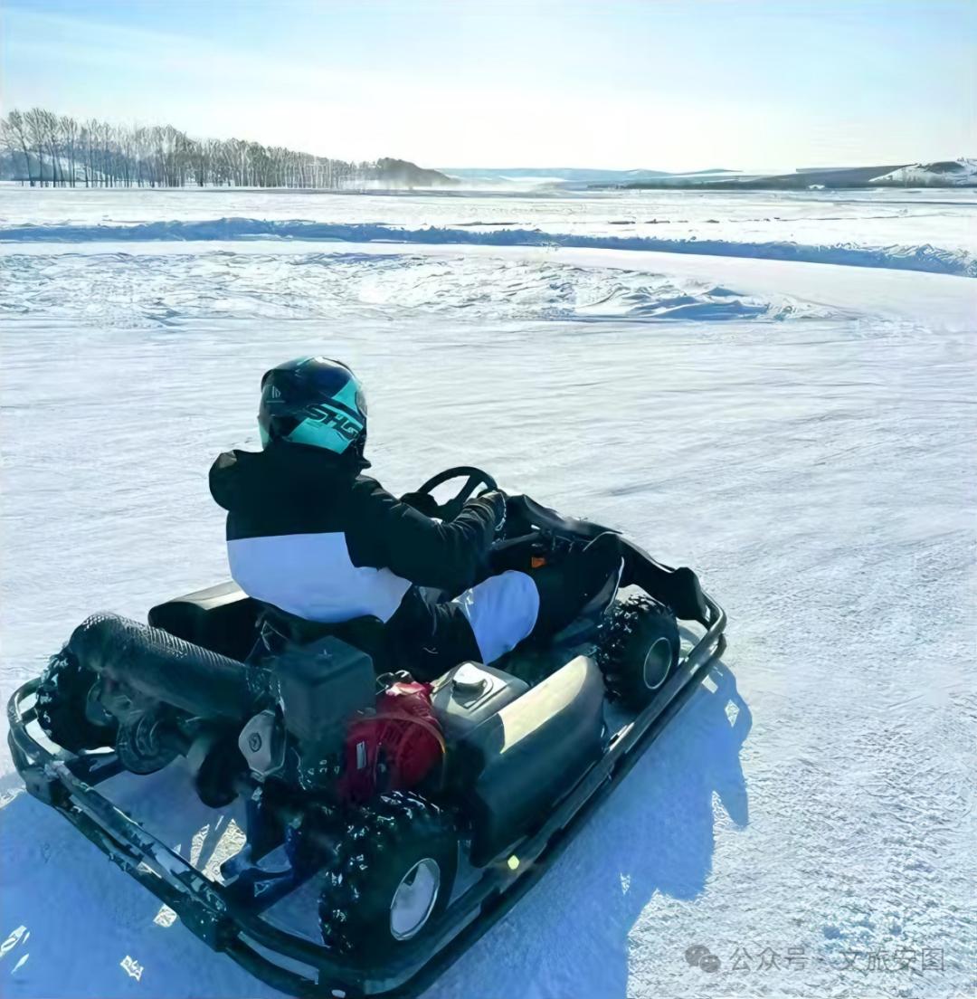 乘坐卡丁车在冰面上飞驰,冲刺、加速,凛冽的寒风迎面吹来,体验漂移的刺激感,风驰电掣的快乐绝对让你不虚此行!
