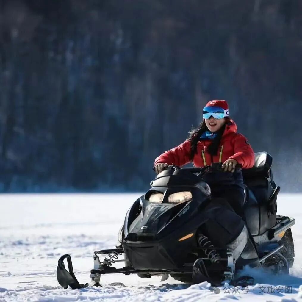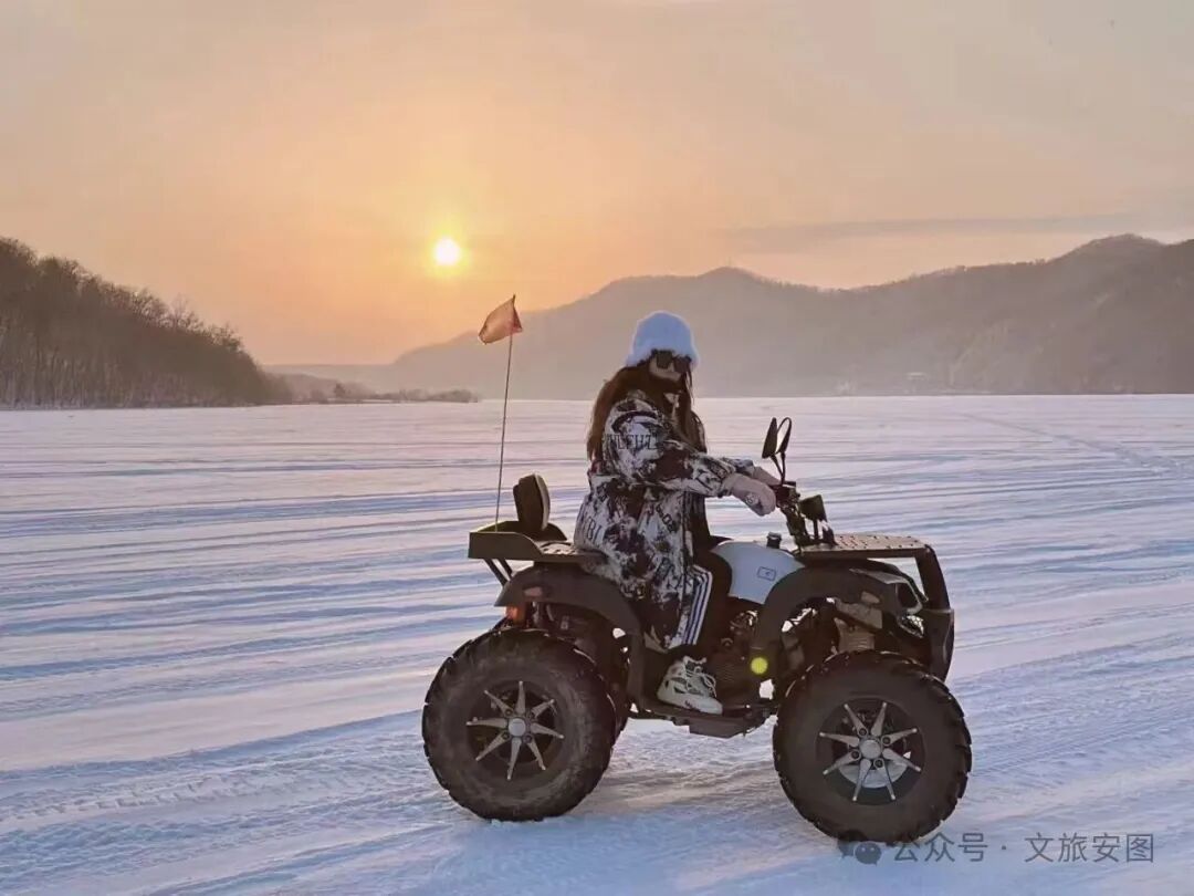 驾驶全地形车在冰面驰骋,感受风的速度!四周被皑皑白雪环绕,银光闪烁,十分耀眼。