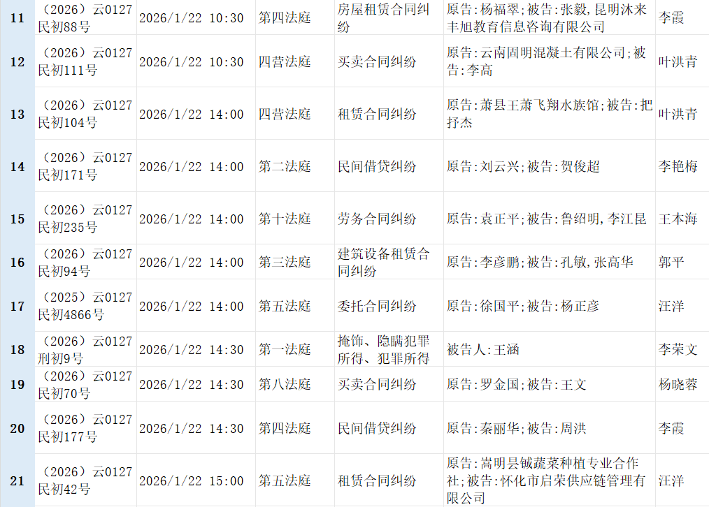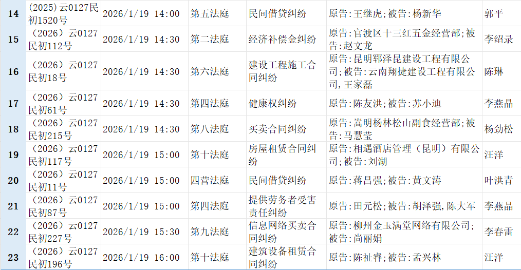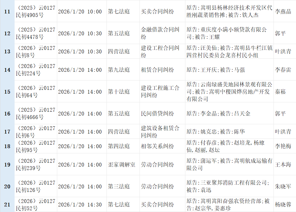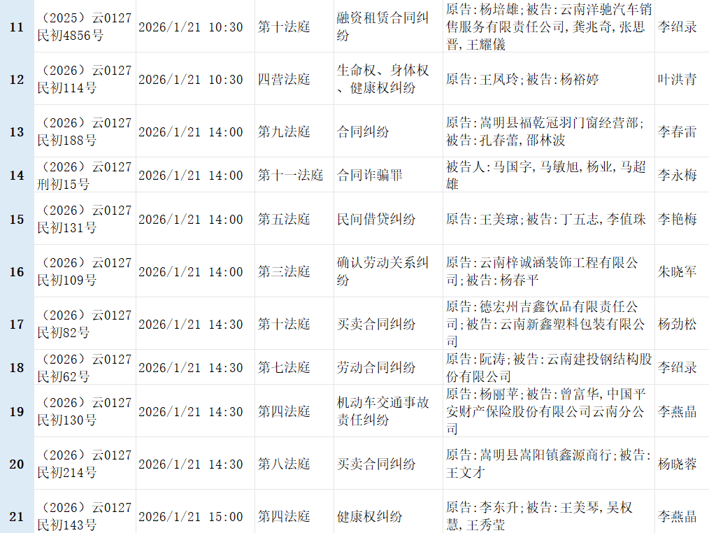 原标题:《嵩明法院开庭排期表(2026年第3期:1.19-1.23)》