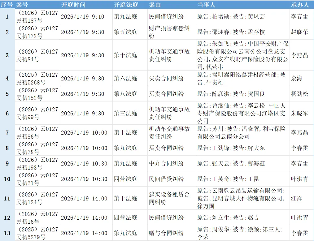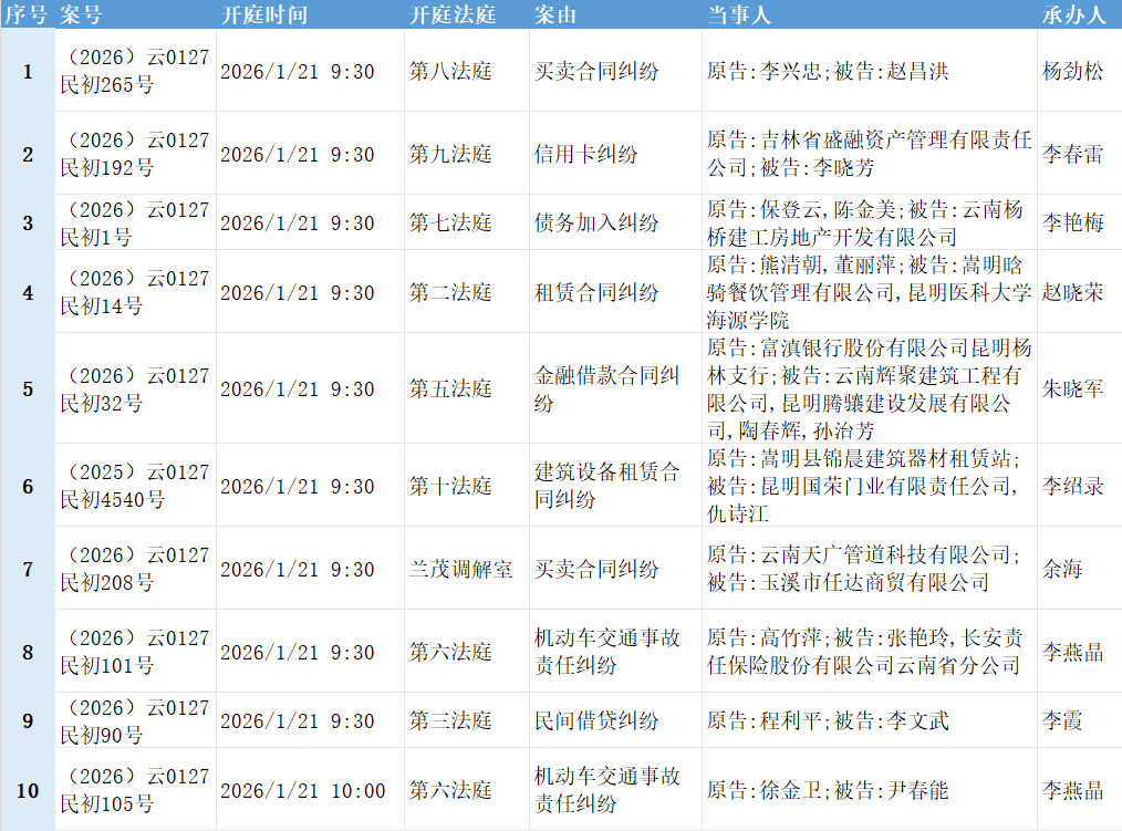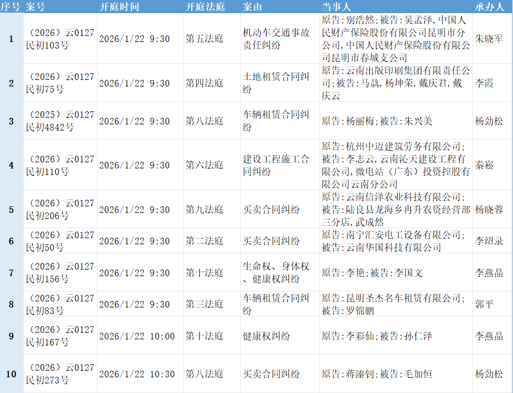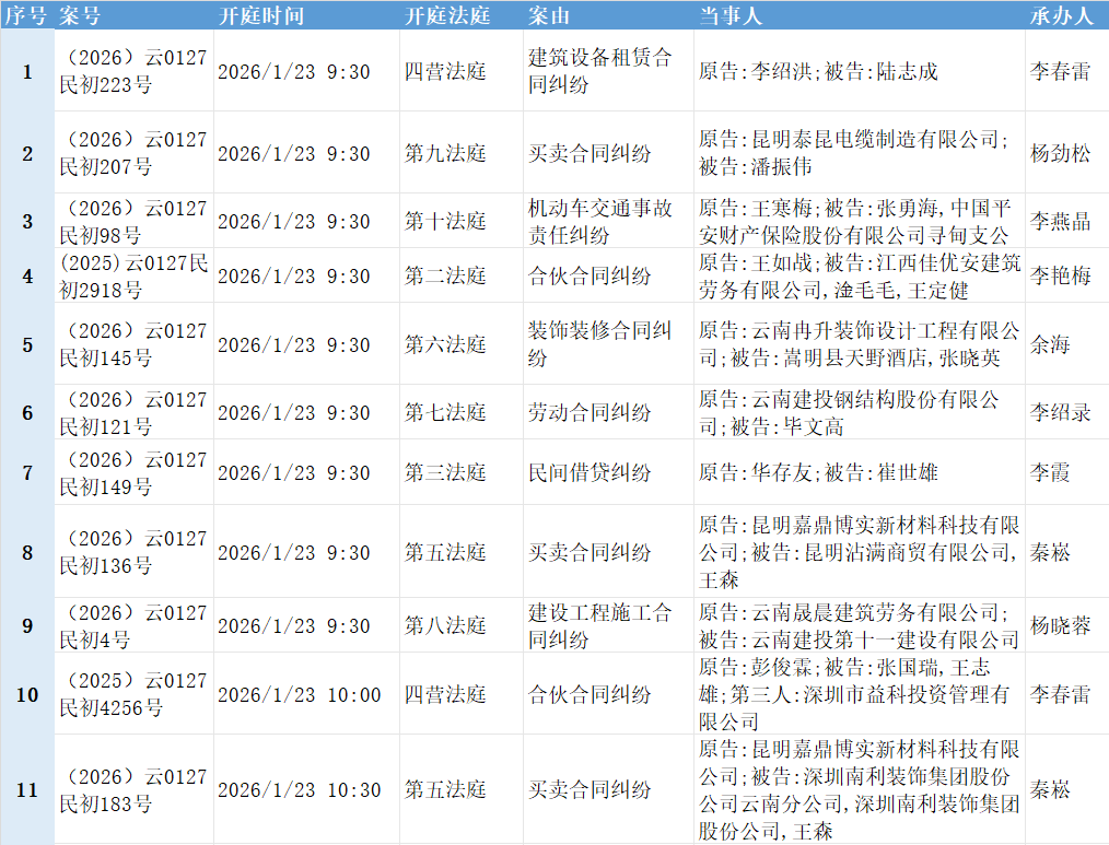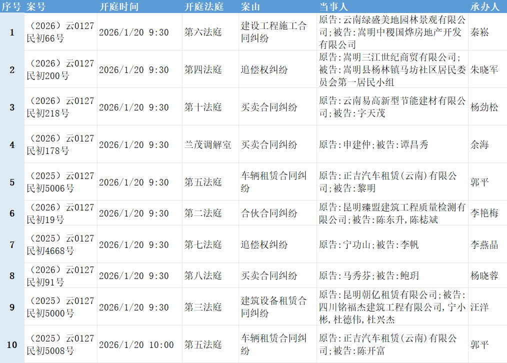 嵩明法院2026年第3期开庭排期公告(1月19日-1月23日)
