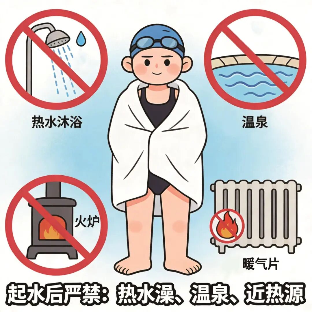 四是重视出水后的保暖复温。上岸后要快速擦干身体做好保暖,通过慢跑、快走等温和运动科学复温,防止“回暖休克”。等身体完全回暖后,再考虑用温水淋浴。