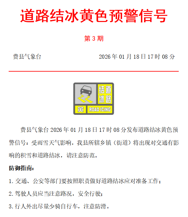 以及道路结冰黄色预警信号